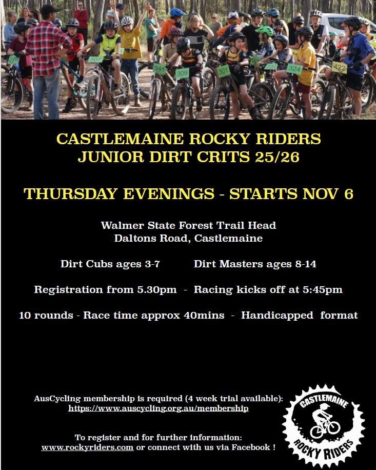 We’re only one month away from another exciting Dirt Crits series and registrations are now open! Dirt Crits is our annual junior cross country mountain bike race series, consisting of 10 rounds of mountain biking fun (5 in Nov-Dec 2025, 5 in Feb-Mar 2026) on our beloved “baco” (Walmer) trails!